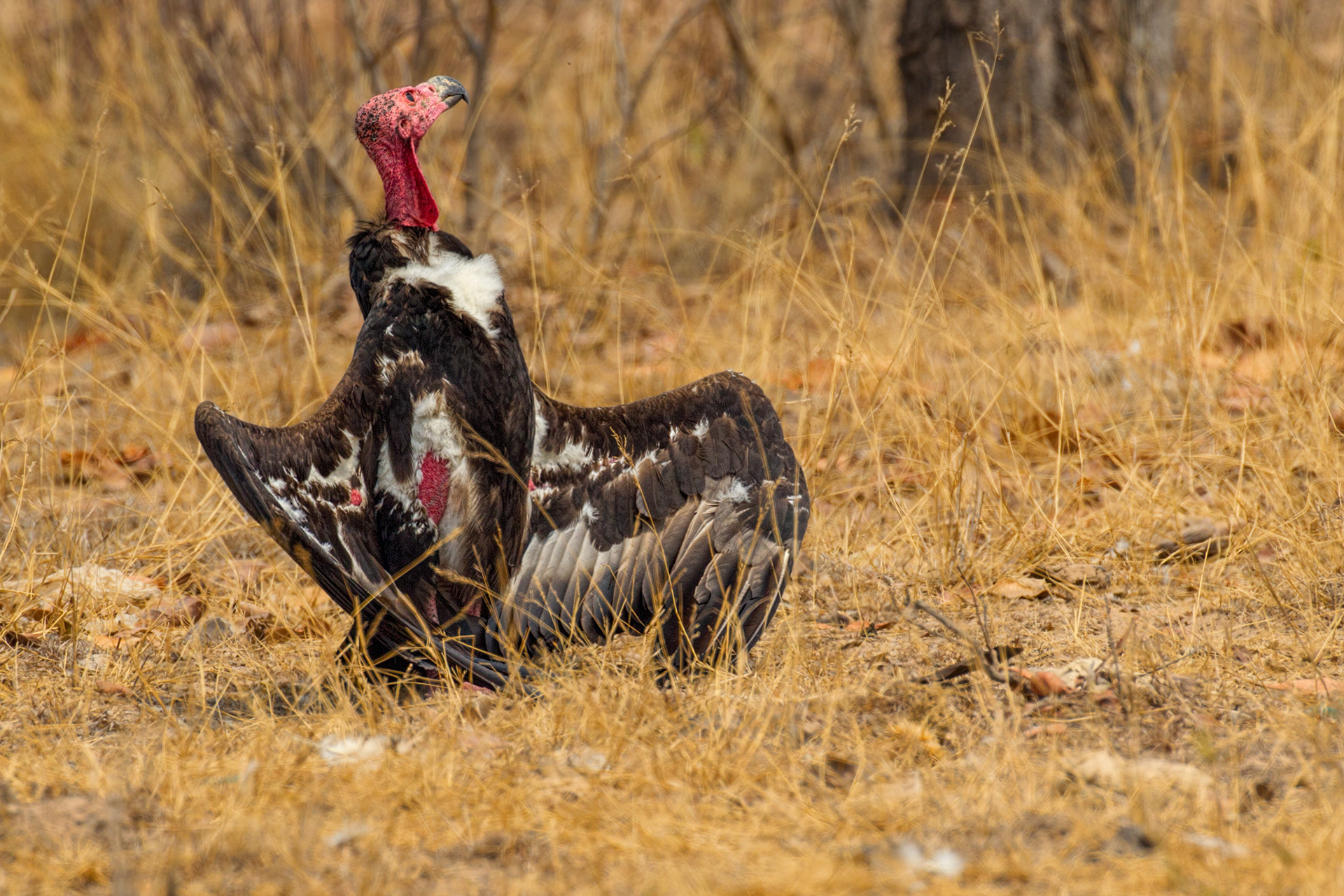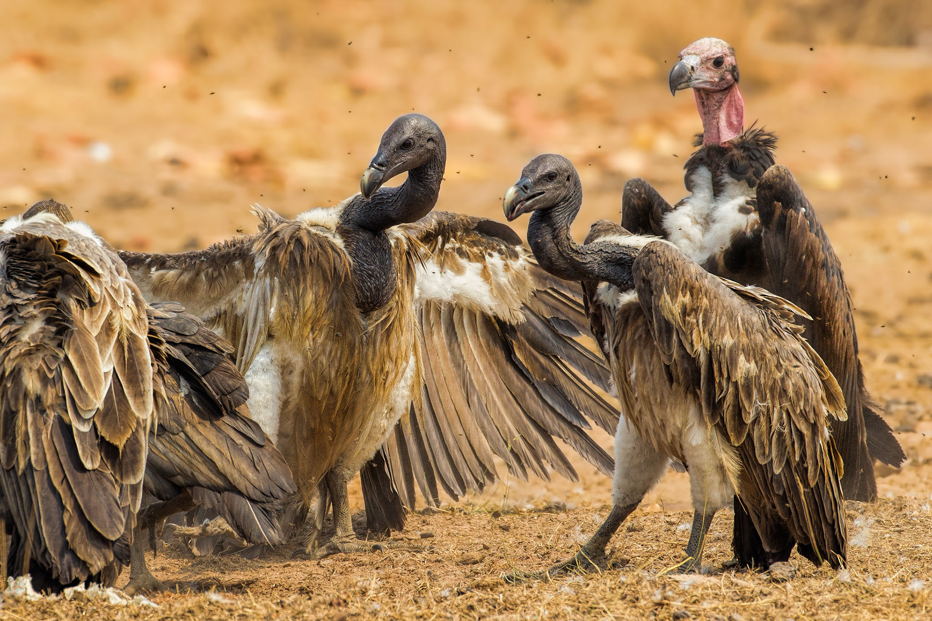 All Asian vultures are critically endangered due to an extreme sensitivity to a bovine painkiller called diclofenac which causes renal failure and death. Up until the 1980's vultures were a common sight throughout South and South East Asia. Now 99% have disappeared. Cambodia is one of the last strongholds of vultures in Asia, Due to a lack of diclofenac. Because of a lack of large mammals on the landscape most vulture populations in Asia depend on Supplemental carcasses from which to feed. THese photos were taken at one of these feedings, at the Western Siem Pang Protected Forest in the Far NOrth of Cambodia.