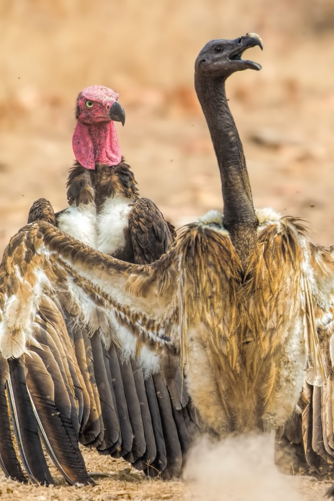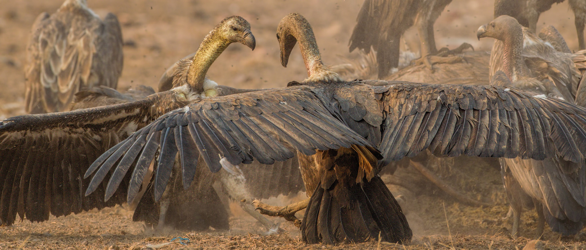 "Challenging the Challenger" Two adult slender-billed vultures (Gyps tenuirostris) clash in a cloud of dust. Western Siem Pang, Cambodia, 2014